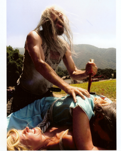 Gin Rummy on the Set of Chainsaw 2 Autographed, 8"x10" photo